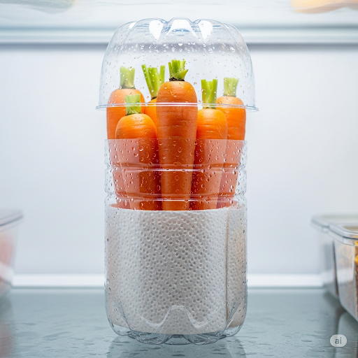 - Reusing PET bottles: A very practical trick is to cut the top of a plastic soda bottle (PET), place the carrots inside, and then close the bottle again. This keeps them in an isolated environment, reducing their exposure to air and dehydration.